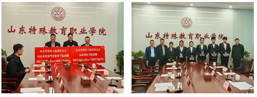 11月11日上午,山东省残疾人福利基金会走进学院,举行vivo“声声有息”公益计划无障碍手机捐赠仪式。学院党委书记杨磊,山东省残疾人福利基金会理事长杨忠民,滨州医学院特殊教育与康复学院常务副院长宿振国,以及2025级听障学生代表参加活动。仪式由学院副院长丁华主持。