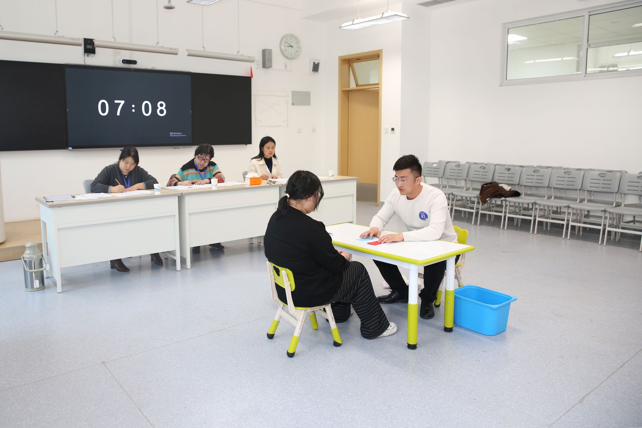 继11月14日笔试项目完成后,15日上午,参赛选手们进入技能操作考试环节。在学院主赛场,“肢体残疾康复”“智力残疾康复”“孤独症残疾康复”专业组以及高校“特殊教育”组的选手们需在规定时间内完成个案评估及个性化康复治疗计划制定,并进行现场模拟康复教学展示。在省听力语言康复中心分赛场,“听力言语残疾康复”组选手们采用个别化教学录像的形式展现与听障儿童一对一的专业互动,他们结合教学对象的特点,声情并茂地将一个故事转化为有效的听觉言语康复素材。这不仅是技能的比拼,更是康复智慧与创造力的展现。