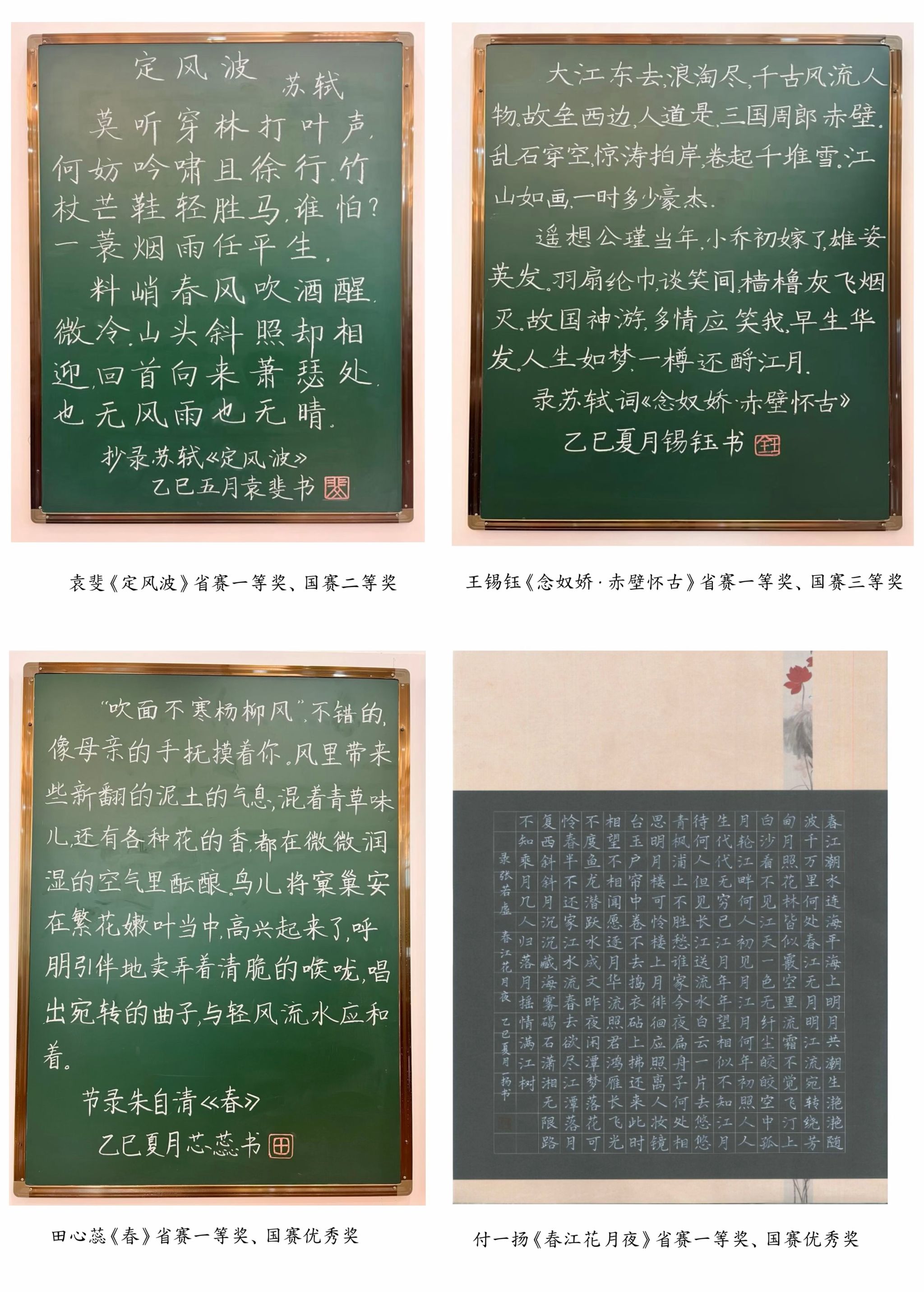 袁斐老师凭借扎实的书法功底,在粉笔大中学教师组中荣获二等奖;特殊教育系学生王锡钰、田心蕊在宋建红老师的精心指导下,分获粉笔师范院校学生组三等奖、优秀奖;付一扬在硬笔大学生组中获得优秀奖。
