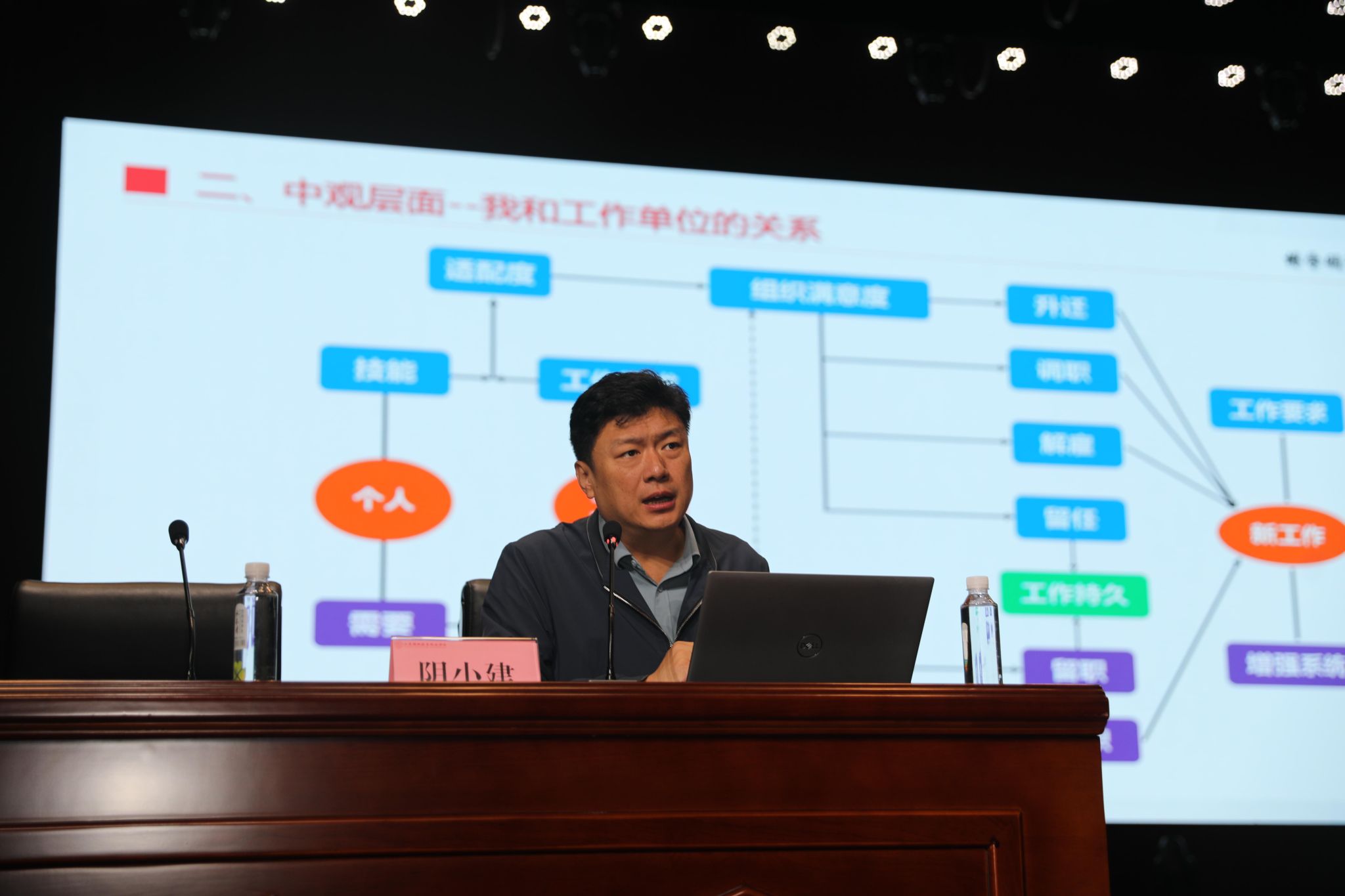 阴教授的讲座视角多元、内容详实。按照“微观-中观-宏观-微观”四层逻辑展开。微观层面,通过引导学生掌握包括行业适配度、岗位胜任力、职业发展性的三维需求分析法,帮助学生厘清个人求职定位,强调“动态调整”的择业观;中观层面,阴教授从“个人”与“单位”双视角出发,提出“找工作-适应才是最好的解决方案”,并以“快乐=能力-期待”的公式,启发学生调整就业心态;宏观层面以“AI时代怎样找工作” 为切入点,给毕业生提出指导性实践建议;讲座最后回归个人执行层面,提出“弹性目标管理”“朋辈督导机制”“无干扰环境模式”三大行动策略。